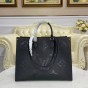 オーバーサイズがスタイリッシュな印象の「オンザゴー GM」。ビジネスシーンから週末まで、あらゆるシーンで活躍するトートバッグです。仕事用の書類やノートパソコンをしっかり収納できる、スクエアシェイプのデザインも魅力。エンボス加工を施した、しなやかなモノグラム・アンプラント レザーでアップデートしました。2本のロングストラップ付きで、手持ちやショルダーバッグとしてもお楽しみいただけます。