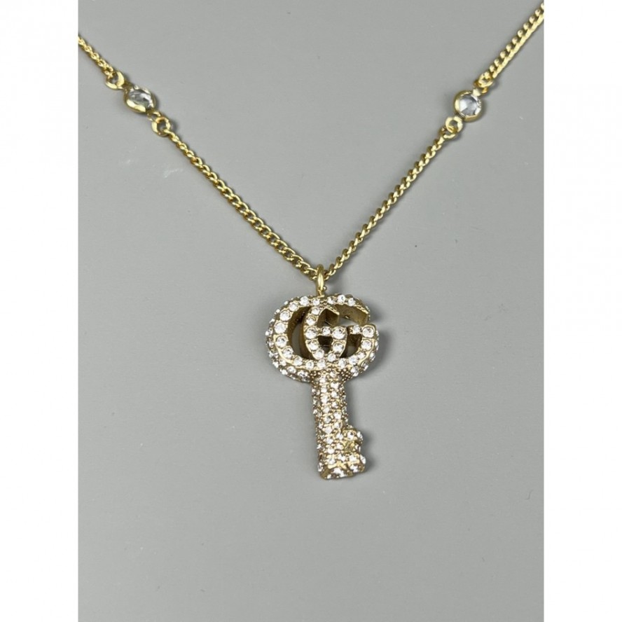 テクスチャードリンクとスムースリンクを交互に配した、コンテンポラリーな雰囲気のシルバーチェーンのネックレス。グッチを象徴するインターロッキングGをエングレービングで表現したペンダントが存在感を放っています。