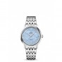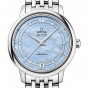 このモデルには、ポリッシュ仕上げを施したローマ数字のアワーマーカーとダイヤモンド インデックスを備えたグロッシーブルー マザーオブパールのダイアルが付属しています。この傑出したダイアルには、6時位置に日付窓が付属しており、傷の付きにくいサファイア・クリスタル ガラスで保護されています。