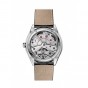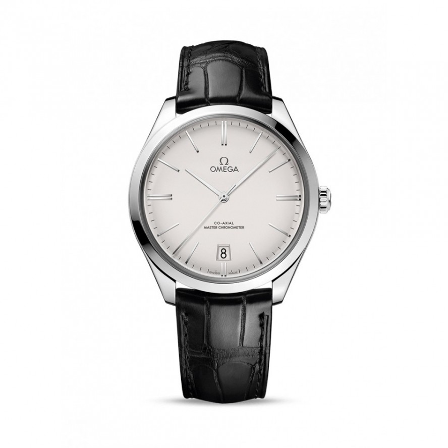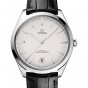 この40 mmのステンレススティール製ケースには、ブラックレザーストラップが付属。ドーム型のオパリンシルバーのダイアルには、6時位置の日付表示や、18Kホワイトゴールドの針とインデックスが配されています。