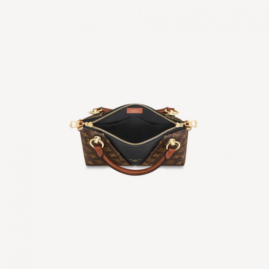 【完売間近】Vuittonの「V」から着想を得て、モノグラム・キャンバスに大ぶりの三角形のパネルをグレインレザーで施した「Vトート BB」。ゴールドカラーの金具とレザーのネームタグをあしらったバッグは、取外し可能なストラップ付きでハンドバッグやショルダーバッグとしてもお使いいただけます。 |