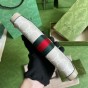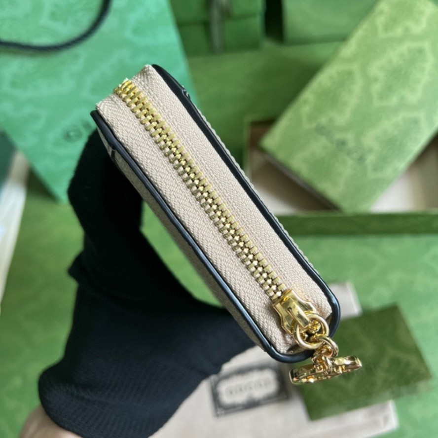 コレクションを特徴付ける自己表現のスピリット。このテーマに基づいてアーカイブエレメントを組み合わせ、新しいスタイルを生み出すことで、グッチのコンテンポラリーな精神を表現しています。GGスプリームで仕立てたこのウォレットは、グリーン/レッド/グリーンのウェブ ストライプとダブルGでアクセントを効かせました。