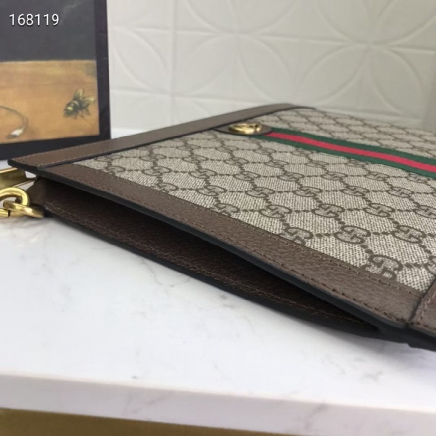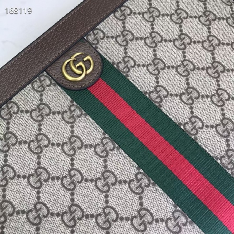 GGスプリーム キャンバスで仕立て、グリーン/レッド/グリーン ウェブ ストライプのトリムとダブルG ハードウェアをあしらったジップ付きポーチ。最新コレクションでは、グッチの代表的なモチーフをクラシカルに組み合わせた〔オフィディア〕ラインに、新たなフォルムやシルエットを取り入れたアイテムが加わりました。