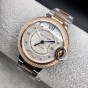 ロンブルードゥカルティエウォッチ、33 mm、バルーンのように軽く、それによって守られているカボションのように青いバロンブルードゥカルティエウォッチは、男性と女性の袖口と手首に優雅さを加えます。ローマ数字のアワーマーカーは、紺碧の王冠の案内の下で軌道から外れました。コンベックスカーブケース、ギョーシェダイヤル、剣型の針、ポリッシュ仕上げまたはフロストリンクブレスレット...カルティエの時計製造の世界では、バロンブルードゥカルティエブルーバルーンウォッチは繊細なスタイルとエレガントなスタイルで知られています。手首のサイズ:175 mm、厚さ:9.96mm。耐用防水深度は3バール(約30メートル)です。