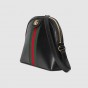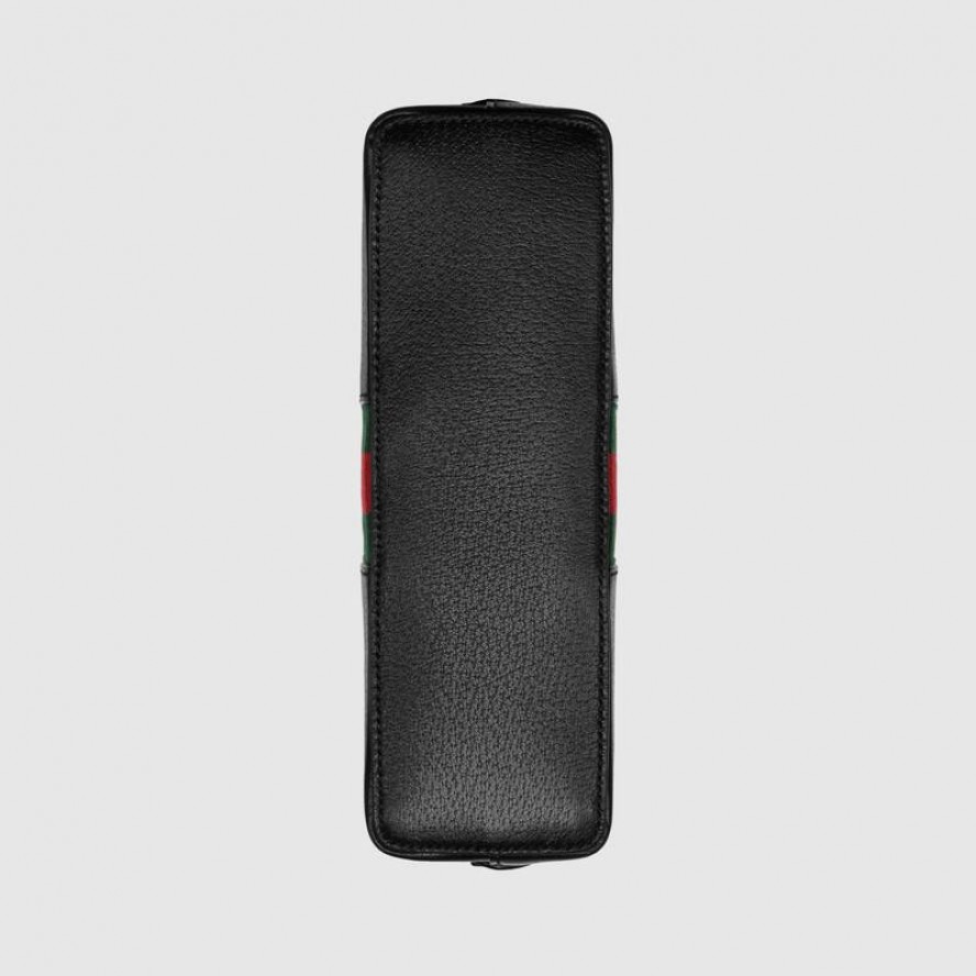 ラウンドトップの〔オフィディア〕ショルダーバッグの新作が最新コレクションに登場。ブラックレザーで仕立て、グリーン/レッド/グリーンのウェブ ストライプを配しています。1970年代のアーカイブに使用されていたベルトバックルをコンテンポラリーにアレンジし、フロントタブとジッパープルに小さなダブルG ディテールを施した人気のスタイルを、キュートなスモールサイズに仕上げました。