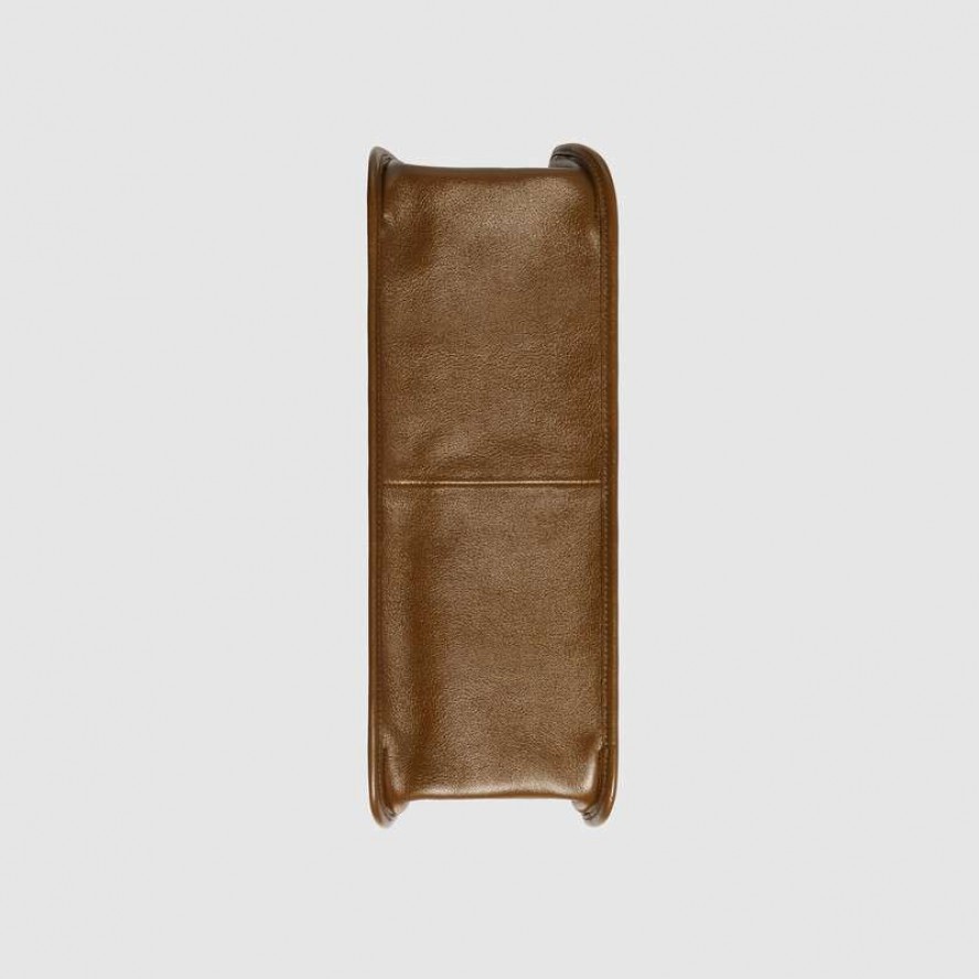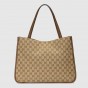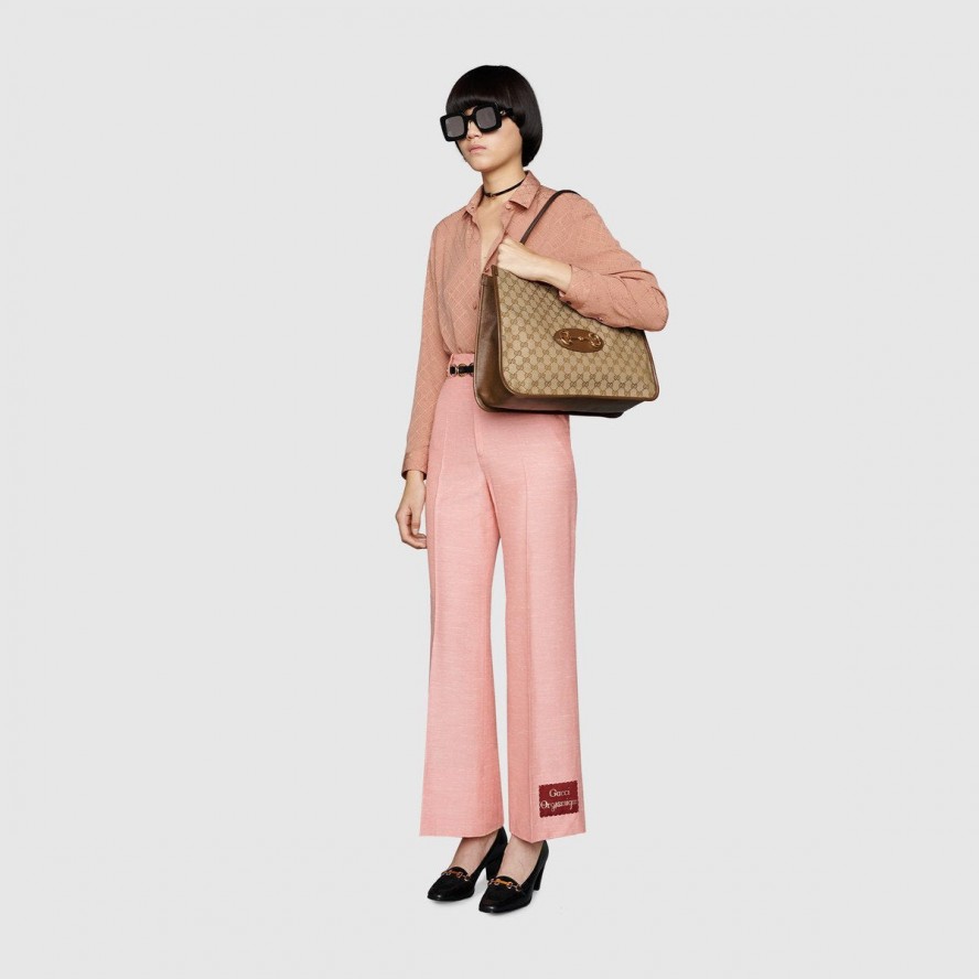今シーズン、〔グッチ ホースビット 1955〕ラインに登場した、丸みのあるエッジとソフトなシェイプで軽さが特徴のトートバッグ。GGスプリーム キャンバスで仕立て、ブラウンレザーのトリムを施しました。ダブルハンドル、収納品を整理しやすいインテリア、マグネット クロージャーを備えています。〔グッチ ホースビット 1955〕は、60年以上前に誕生したオリジナルのバッグを彩っていたディテールに現代的なスピリットを加え、ホースビットを際立たせたコレクションです。ダブルリングとバーから成るこのモチーフはブランドのルーツを物語るもので、乗馬の世界から取り入れたグッチのシンボルの中でも最も代表的なエレメントのひとつとなっています。
