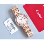 フランスのジュエリーと時計の家カルティエのオリジナルクラシックモデルバロンブルードゥカルティは、スチールブレスレットを身に着けた女性用のミニチュアサイズ33mmです。ステンレススチールとロックゴールドのケース、フェイクスピネルカボションをあしらったフルーティングを施されたスチールクラウン、サファイアクリスタル