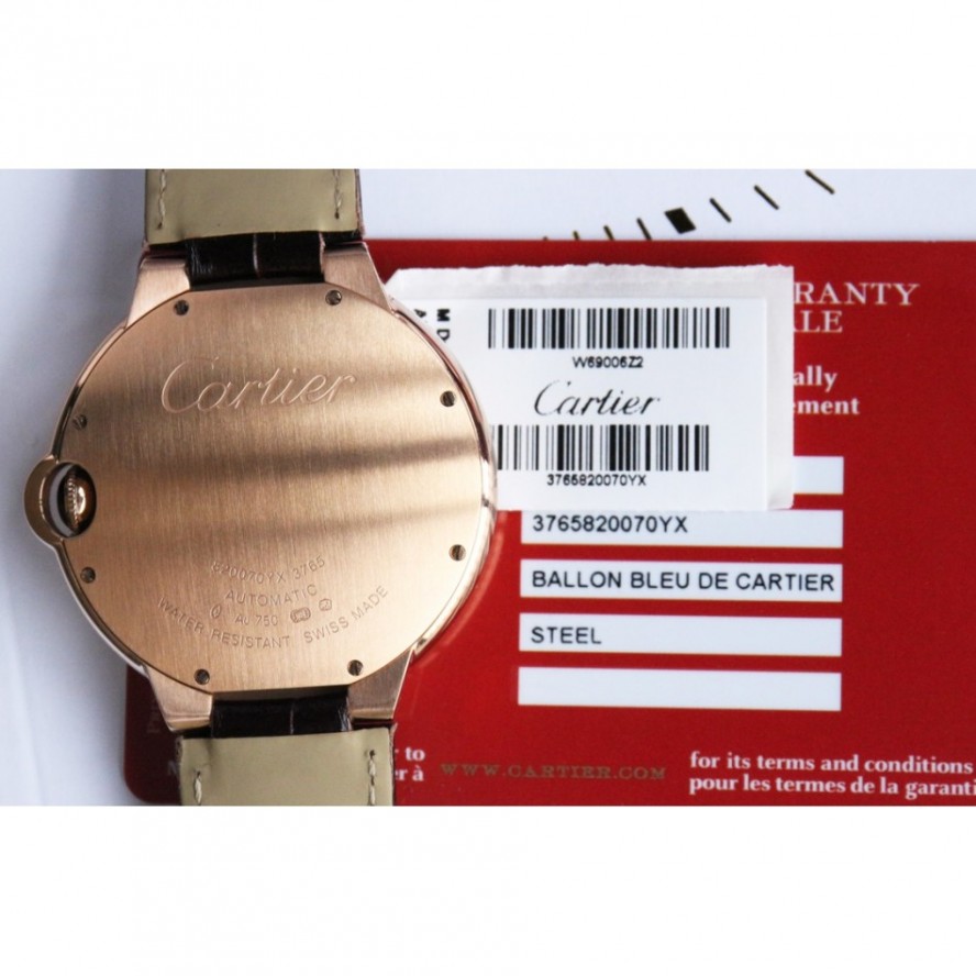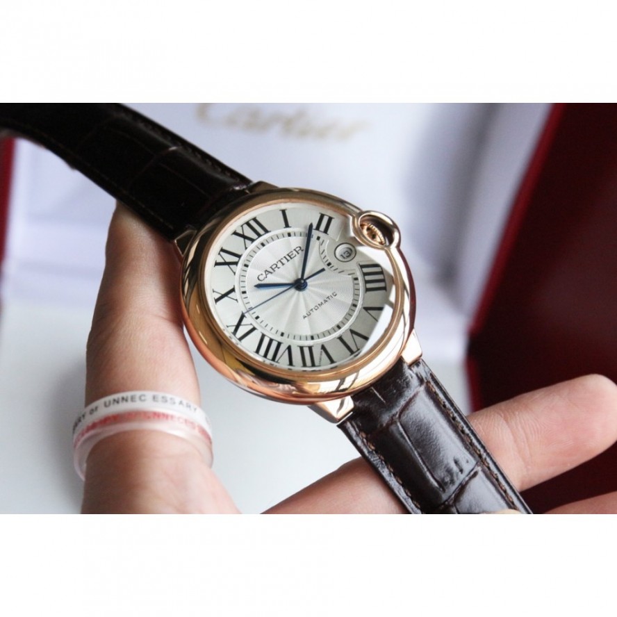 バロンブルードゥカルティエブルーバルーンカーボンコーティングウォッチ、42 mmモデル、カルティエ1847MCワークショップは自動巻きの機械式ムーブメントを洗練させました。ADLCカーボンコーティング(アモルファスダイヤモンドライクカーボンコーティング)ステンレススチールケース、溝付きクラウン、合成スピネルカボション、ブラックダイヤル、ローマ数字、剣型の発光ステンレススチール針、サファイアクリスタルミラー、ブラックカーフスキンストラップ、ステンレススチールフォールディングクラスプ、3時位置の日付表示ウィンドウ。ケースサイズ:直径:42.1mm、ケース厚さ:13mm。3バールまでの耐水性(約30メートル/ 100フィート)。