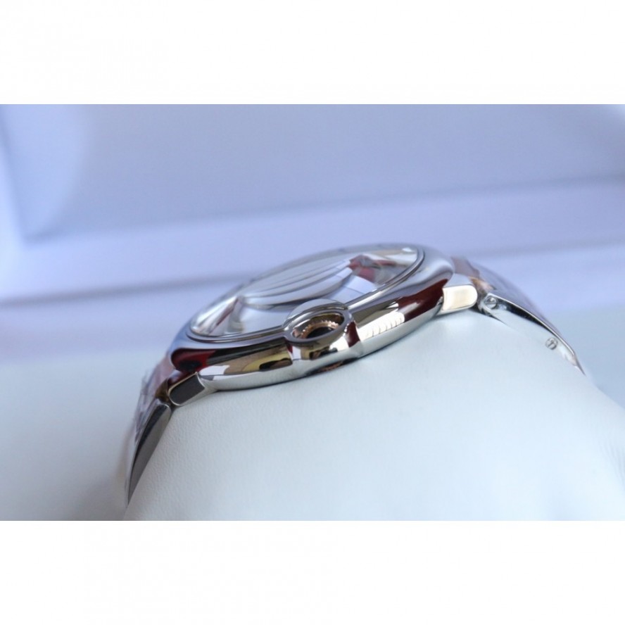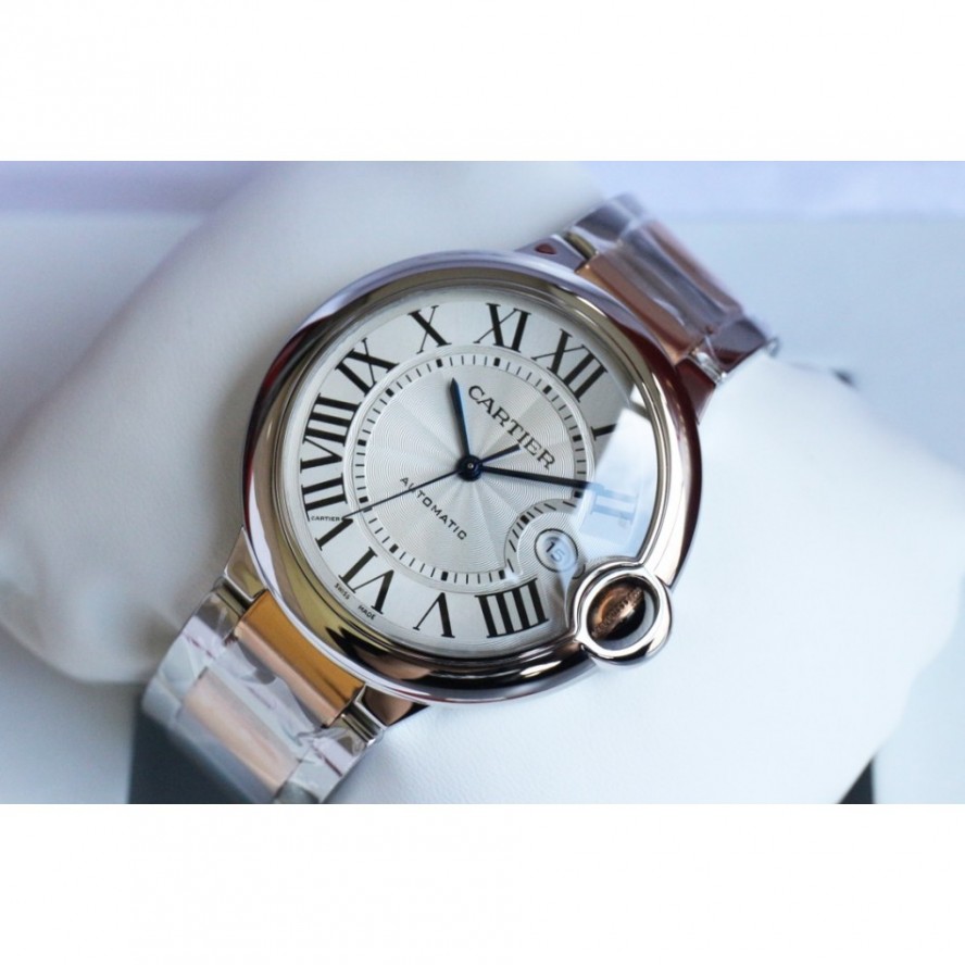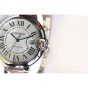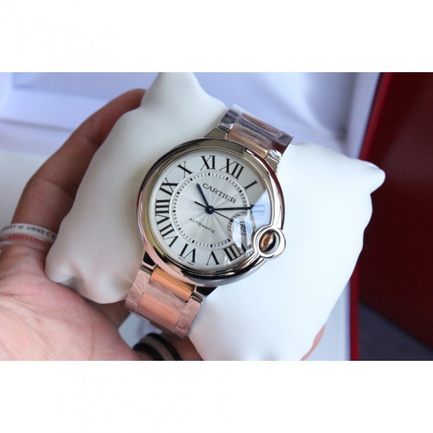 バロンブルードゥカルティエブルーバルーンカーボンコーティングウォッチ、42 mmモデル、カルティエ1847MCワークショップは自動巻きの機械式ムーブメントを洗練させました。ADLCカーボンコーティング(アモルファスダイヤモンドライクカーボンコーティング)ステンレススチールケース、溝付きクラウン、合成スピネルカボション、ブラックダイヤル、ローマ数字、剣型の発光ステンレススチール針、サファイアクリスタルミラー、ブラックカーフスキンストラップ、ステンレススチールフォールディングクラスプ、3時位置の日付表示ウィンドウ。ケースサイズ:直径:42.1mm、ケース厚さ:13mm。3バールまでの耐水性(約30メートル/ 100フィート)。