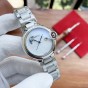 フランスのジュエリーと時計の家カルティエのオリジナルクラシックモデルバロンブルードゥカルティは、スチールブレスレットを身に着けた女性用のミニチュアサイズ33mmです。ステンレススチールとロックゴールドのケース、フェイクスピネルカボションをあしらったフルーティングを施されたスチールクラウン、サファイアクリスタル