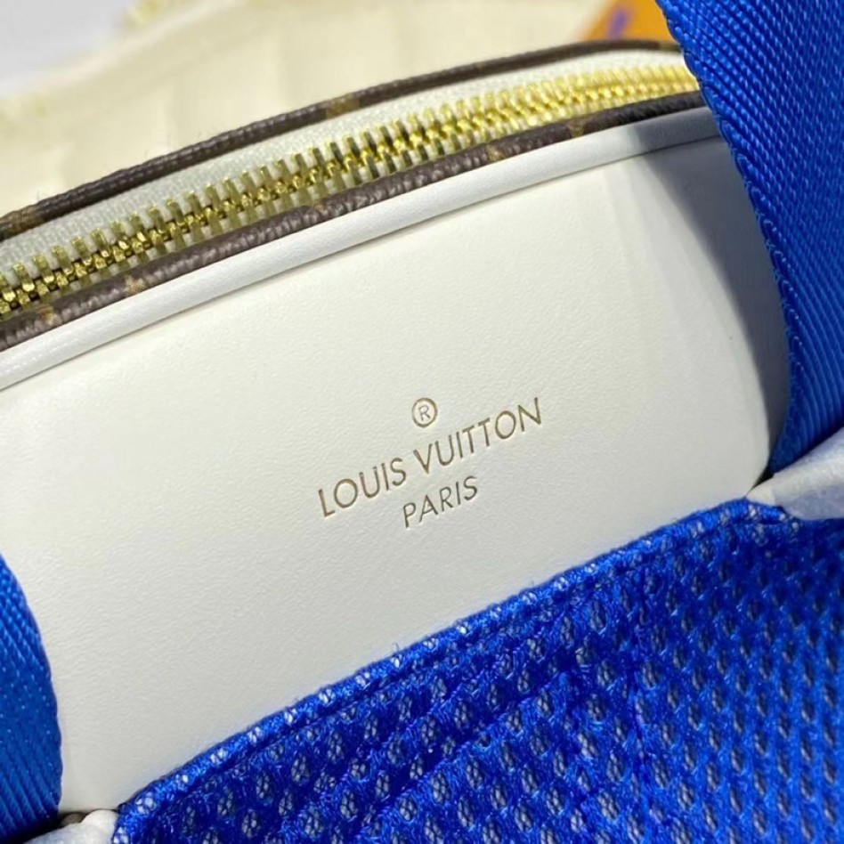 NBAのロゴの特徴的な色とルイ・ヴィトンのクラシカルなモノグラム・キャンバスを組み合わせ、メンズ・スポーツバッグをヴァージル・アブローならではのモダンな雰囲気にアップデートした「LVxNBA バックパック NV」。複数のポケットを備え、日常の必需品を収納できる実用性に優れたアイテムです。背面にはブルーのメッシュ素材にバスケットボールの刺繍をあしらい、快適かつスタイリッシュに仕上げました。