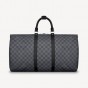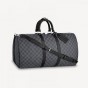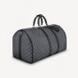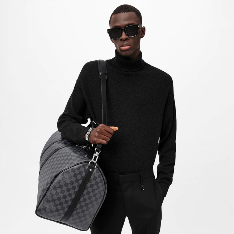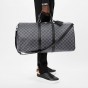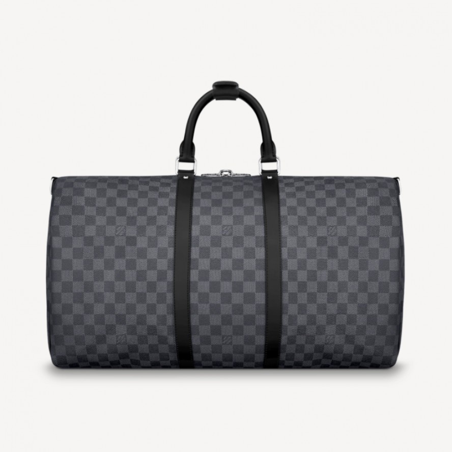 シンプル且つ、都会的なデザインが印象的なダミエ・グラフィットの「キーポル・バンドリエール 55」。ルイ・ヴィトンの定番の旅行バッグがマスキュリンなイメージに。取り外し可能なレザーストラップ付きで、肩に掛けても使用可能。 |
