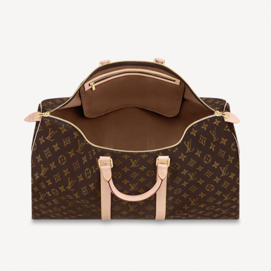 ルイ・ヴィトンの伝統を受け継ぐ旅行用バッグ「キーポル 55」。丸みを帯びたレザーハンドルは、持ち心地の良さを追求しています。 |