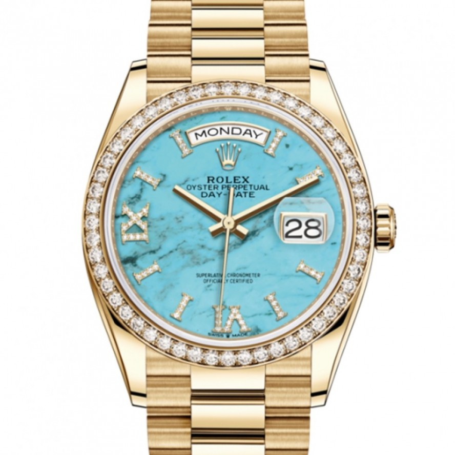 128348 デイデイト 36 オイスター、36 mm、イエローゴールド、ダイヤモンド