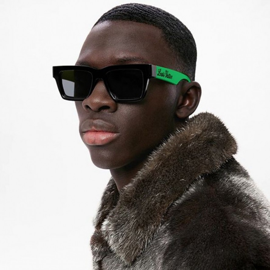 今シーズンならではの大胆な「ルイヴィトン」シグネチャーをテンプルにあしらい、ブリッジにはメゾンのシグネチャーの刻印を施しました。