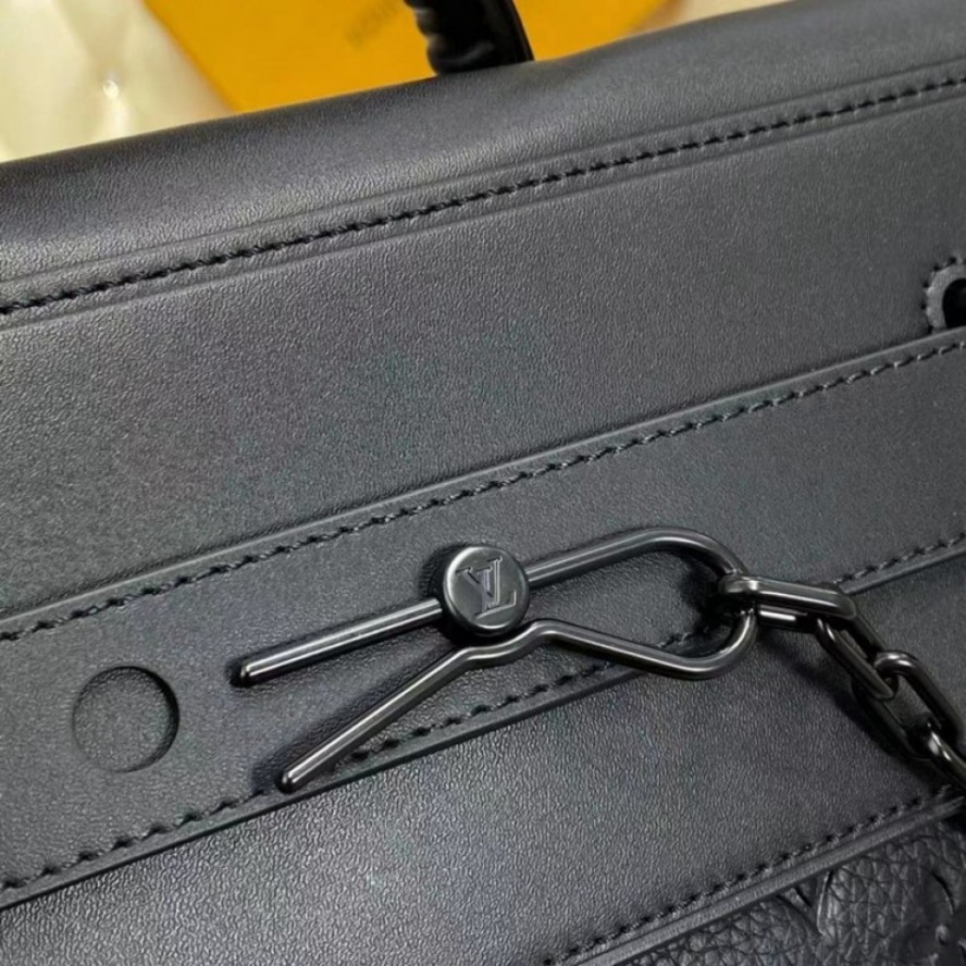 ブラックのトリヨンレザーにモノグラム・パターンをエンボス加工し、クラシカルなメッセンジャーバッグに新鮮なひねりを加えた「スティーマー PM」。色調を合わせたマットなブラックのメタルパーツや、ヴァージル・アブローならではのチェーンとピンの留め具で仕上げました。トップハンドルで手持ちや、調節可能なストラップでクロスボディバッグとしてもご使用いただけます。