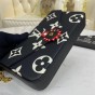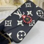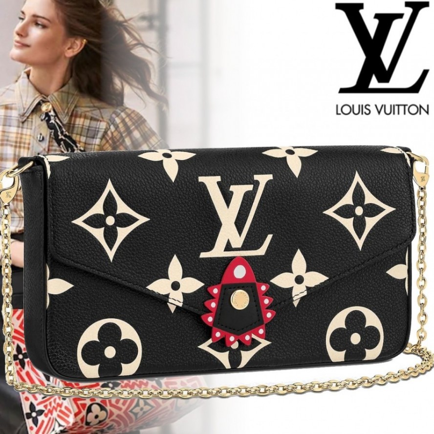 多用途にお使いいただける「ポシェット・フェリシー」。アクセサリー、レザーグッズ、プレタポルテにわたって展開する「LV クラフティ」スペシャルエディションの1つです。ブラックのモノグラム・アンプラント レザーにモノグラム・ジャイアント パターンをプリントし、バイカラーでグラフィカルに仕上げました。スナップスタイルの留め具を、工芸品を想わせるカラフルなディテールが彩ります。