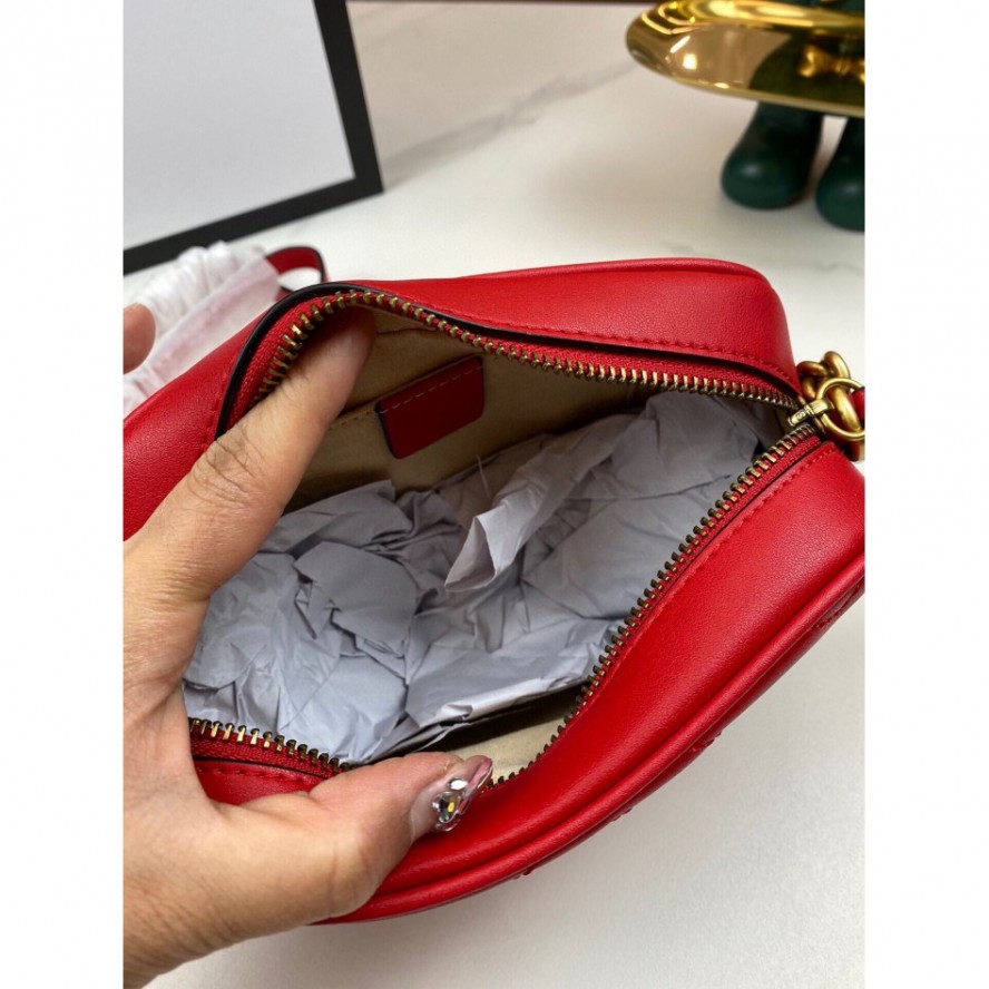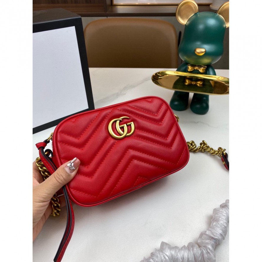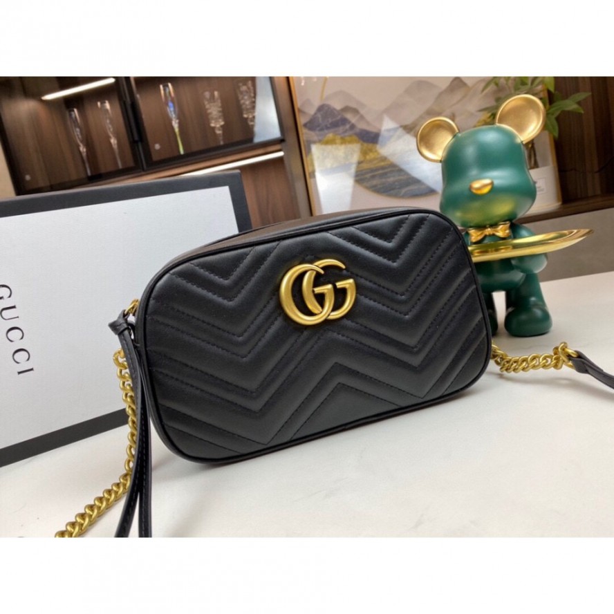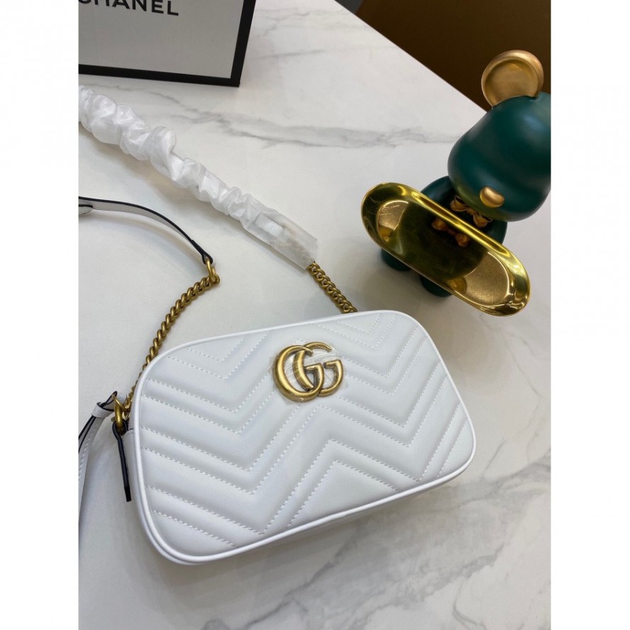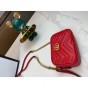 ソフトなストラクチャードシェイプにダブルG ハードウェア付きのジップトップ クロージャーを組み合わせた、スモールサイズの〔GGマーモント〕 チェーンショルダーバッグ。チェーンストラップには、レザー ショルダー ディテール付き。シェブロン デザインのキルティング レザーを使用しています。