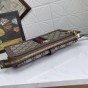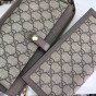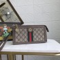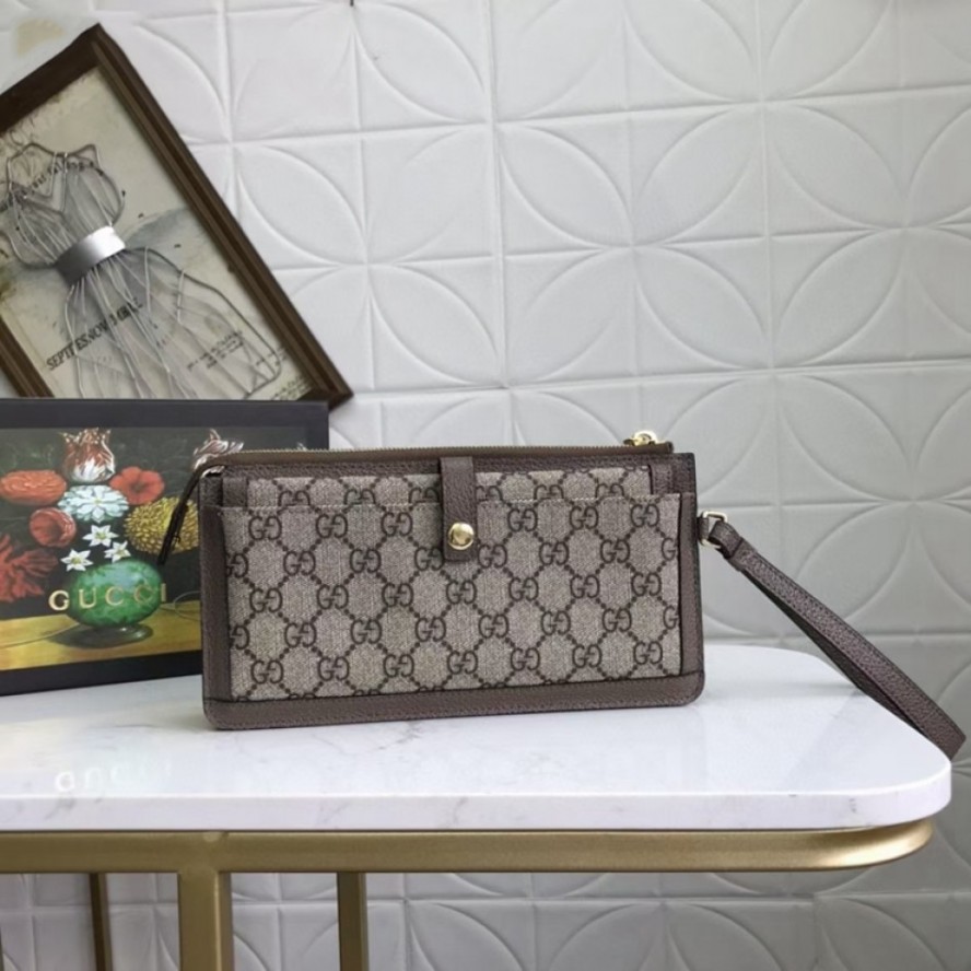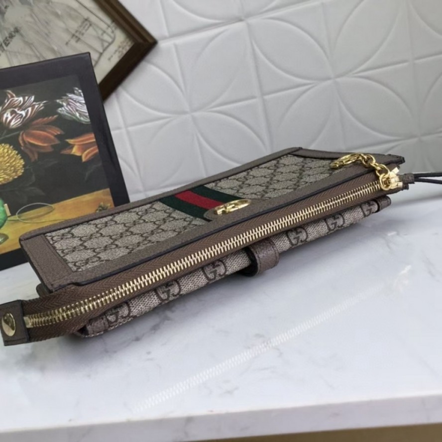 GGスプリーム キャンバスで仕立て、グリーン/レッド/グリーン ウェブ ストライプのトリムとダブルG ハードウェアをあしらったジップ付きポーチ。最新コレクションでは、グッチの代表的なモチーフをクラシカルに組み合わせた〔オフィディア〕ラインに、新たなフォルムやシルエットを取り入れたアイテムが加わりました。
