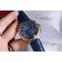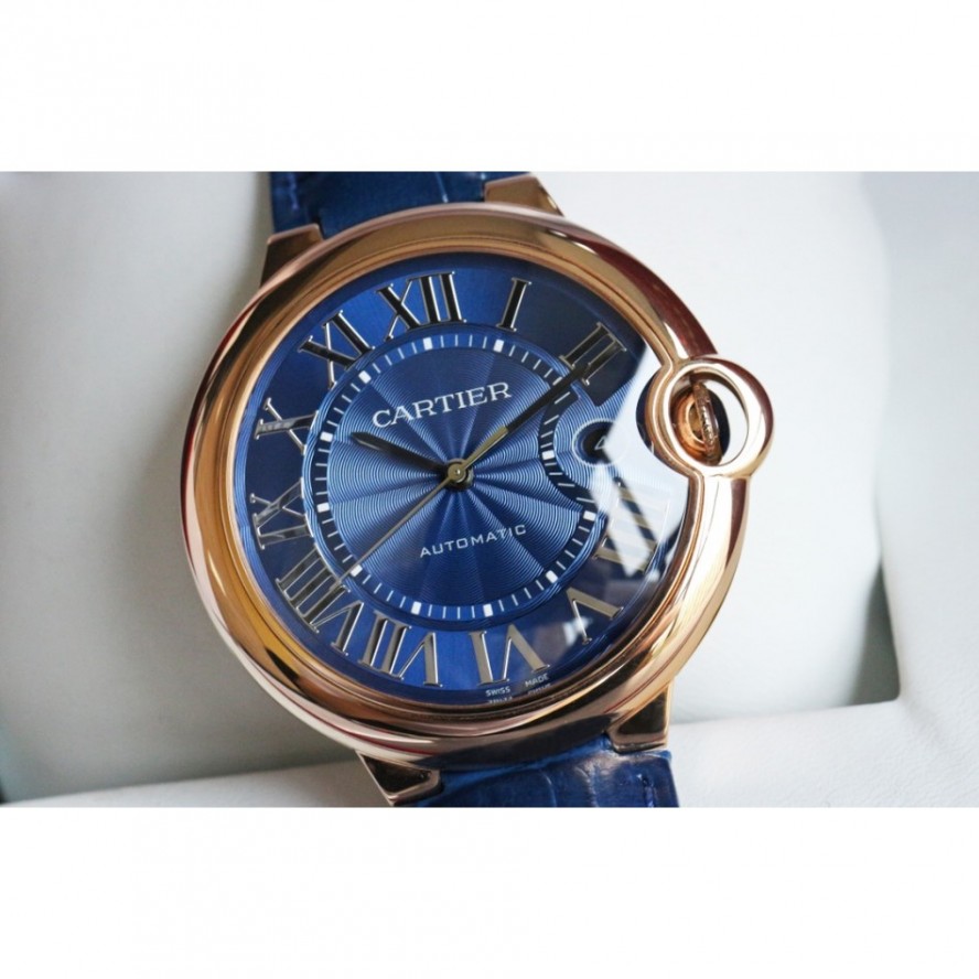 バロンブルードゥカルティエブルーバルーンウォッチ、42 mmモデル、カルティエ1847MCワークショップは自動巻きの機械式ムーブメントを洗練させました。18Kローズゴールドケース、フルーティングを施されたリューズ、サファイアカボション、ブルーギョーシェダイヤルがちりばめられています。刀の形をしたポインター。サファイアクリスタルミラー。交換可能な18Kローズゴールドのフォールディングクラスプを備えたネイビーブルーのアリゲーターレザーストラップ。カレンダー表示ウィンドウは3時に設定されています。厚さ:13mm。3バール(約30メートル)までの耐水性。