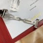 フランスのジュエリーと時計の家カルティエのオリジナルクラシックモデルバロンブルードゥカルティは、スチールブレスレットを身に着けた女性用のミニチュアサイズ42mmです。ステンレススチールとロックゴールドのケース、フェイクスピネルカボションをあしらったフルーティングを施されたスチールクラウン、サファイアクリスタル