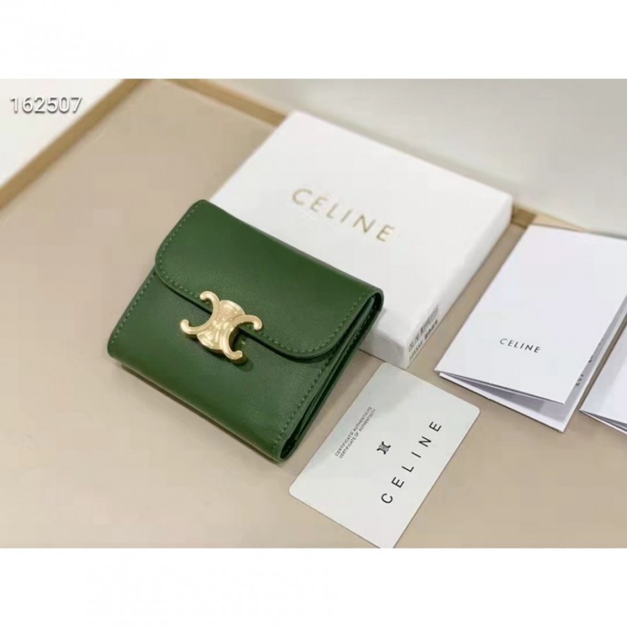 Celine小さな光沢のある滑らかなラムレザーフラップウォレット財布