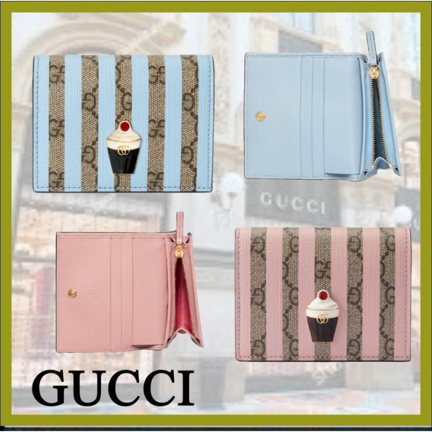 ブルー /ピンクストライプ プリント入り ベージュ&エボニー GGスプリーム キャンバス