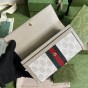 コレクションを特徴付ける自己表現のスピリット。このテーマに基づいてアーカイブエレメントを組み合わせ、新しいスタイルを生み出すことで、グッチのコンテンポラリーな精神を表現しています。GGスプリームで仕立てたこのウォレットは、グリーン/レッド/グリーンのウェブ ストライプとダブルGでアクセントを効かせました。