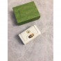 グッチの歴史の中核となっているバンブー素材へのオマージュを表現したキーケース。バンブークロージャーがデザインのポイントです。 ホワイトのレザーで仕立て、ブランド創設者グッチオ・グッチのイニシャルを表すダブルGのハードウェアをあしらいました。