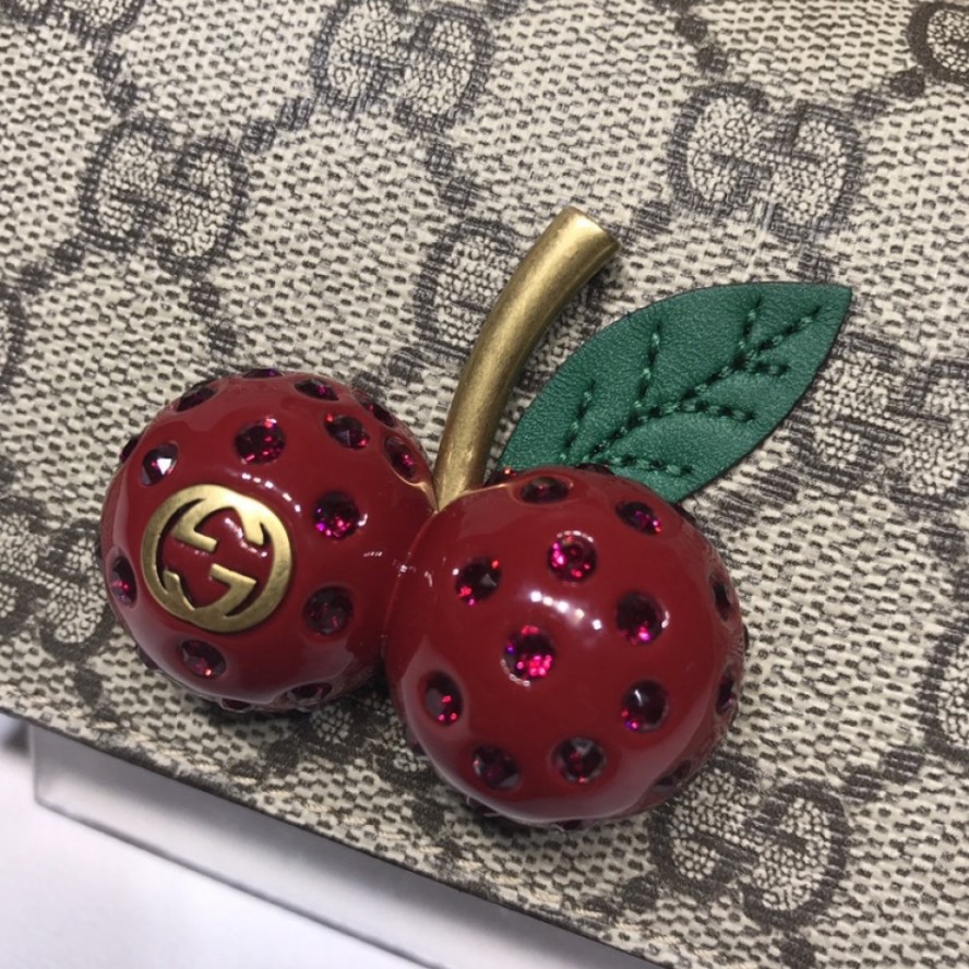 GGスプリーム にクリスタル製のチェリー(さくらんぼ) があしらわれた 遊び心溢れるカードケース