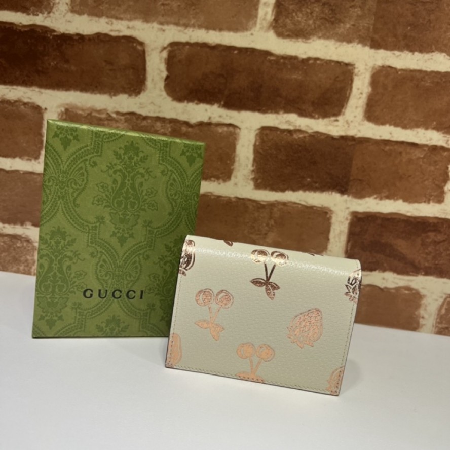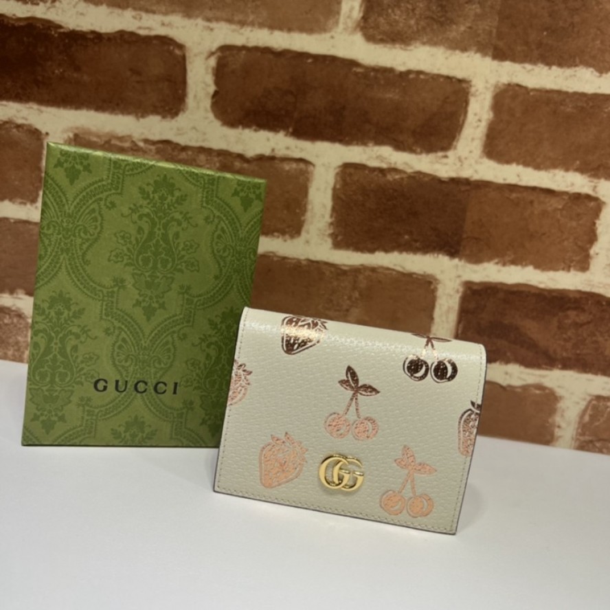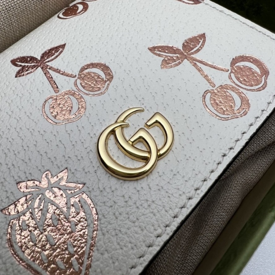 遊び心あふれるブランドのスピリットを表現するフルーツとベジタブルは、現代のグッチを代表するモチーフとして、クリエイティブ・ディレクターであるアレッサンドロ・ミケーレが手がける最新コレクションを彩っています。このカードケースウォレットではコンテンポラリーな発想でこのテーマをアレンジし、個性の際立つメタリック仕上げのストロベリー&チェリー プリントでアクセントを添えました。ホワイトレザーで仕立て、〔GGマーモント〕ラインを象徴するダブルGのハードウェアを飾っています。