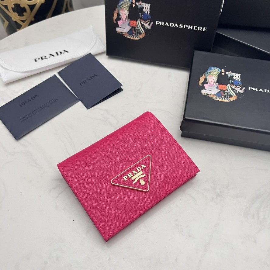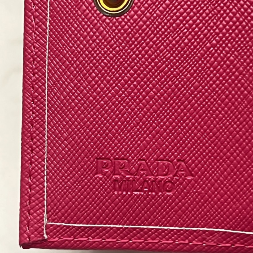 コンパクトなフォルムが美しい、上質な「サフィアーノ」レザー(牛革)の財布。クレジットカードホルダー、札入れと小銭入れが備わっています。メタルのトライアングルロゴ付。