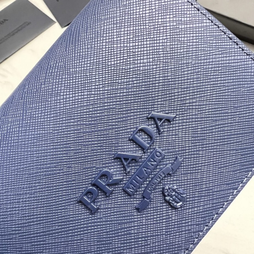 コンパクトなフォルムが美しい、上質な「サフィアーノ」レザー(牛革)の財布。クレジットカードホルダー、札入れと小銭入れが備わっています。メタルのトライアングルロゴ付。