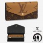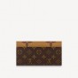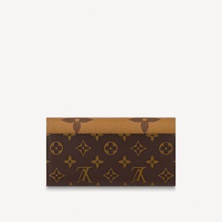 このサラウォレットは、モノグラムとモノグラムリバースジャイアントキャンバスを使用して、クラシックな正方形の構成を再現しています。 整然とした室内空間にはポケットやカードスロットを備え、封筒風のフラップには刻印入りのプレスバックルをあしらいました。
