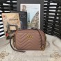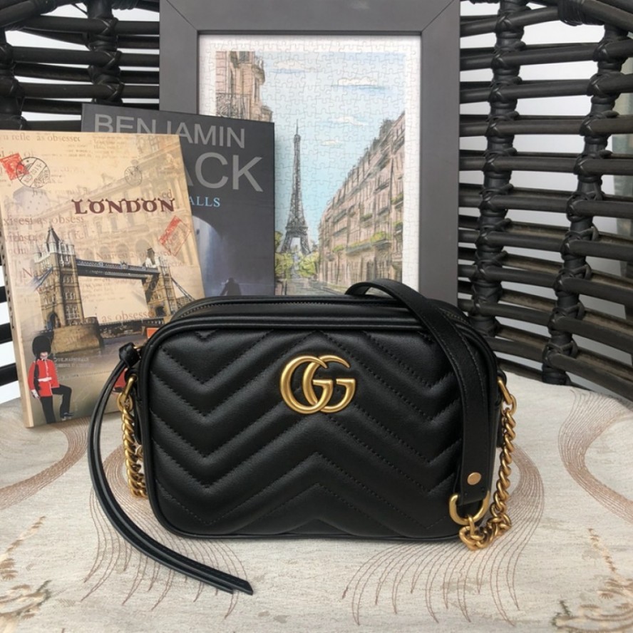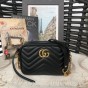 ソフトなストラクチャードシェイプが特徴的なミニサイズの〔GGマーモント〕 チェーンショルダーバッグ。ジップトップ クロージャーにダブルG ハードウェアがあしらわれています。チェーン ショルダーストラップには、レザーのショルダー ディテールが飾られています。バックのGGが印象的なシェブロン デザインのキルティングレザー製です。