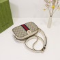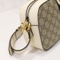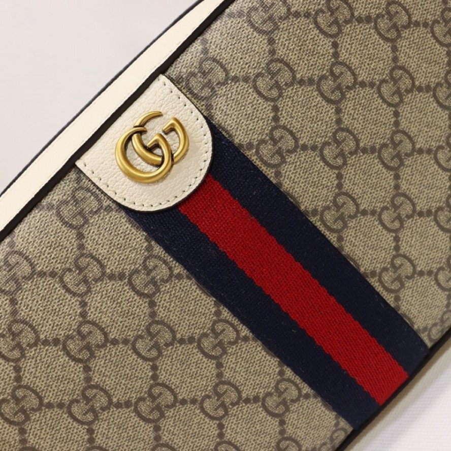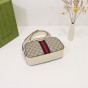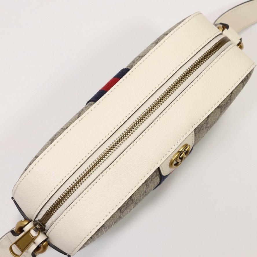 Aria コレクションでは、ヴィンテージを思わせるディテールにグッチを象徴するモチーフを組み合わせた新たなアイテムが加わり、〔オフィディア〕の世界がさらなる広がりを見せています。このカメラケースはベージュ&エボニーのGGスプリーム キャンバスで仕立て、ホワイトのレザー トリムを施しました。ブルー/レッド/ブルーのウェブ ストライプ ディテールを中央に配しています。ショルダーストラップをつけてクロスボディバッグとしてもご使用いただけます。