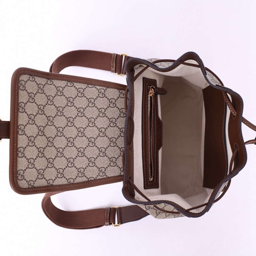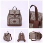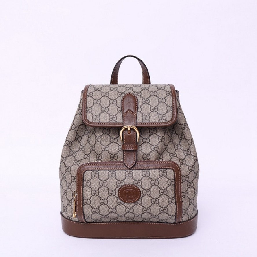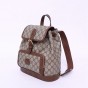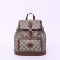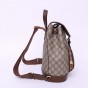 さまざまな素材やカラー、グッチのコードをミックスしたヴィンテージ感のあるスタイル。このバックパックは、ベージュ&エボニーのGGスプリーム キャンバスで仕立て、ブラウンのレザー トリムをあしらっています。最も歴史あるグッチのコードのひとつ、インターロッキングGを配してアクセントを添えています。