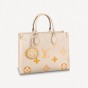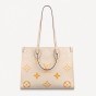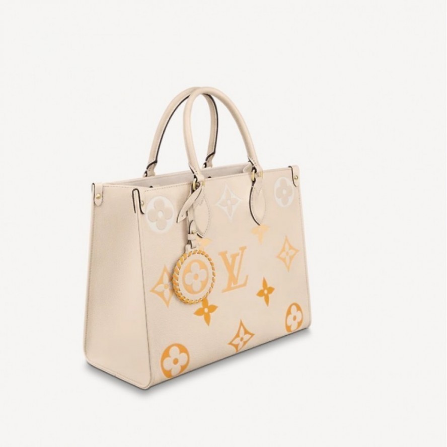 プールカプセルシリーズのOnTheGoミディアムトートバッグはモノグラムエンパイアインテレザーで作られ、モノグラムのエンボスペイントは微妙なグラデーションカラーで塗装されています。 ユーモラスな革張りは、ルイ・ヴィトンの優れた職人技を際立たせています。 ラップトップやその他の付随するニーズに簡単に対応できる十分なスペースがあります。 長いハンドルと短いハンドルは、肩やハンドヘルドデバイスに役立ちます。