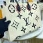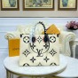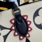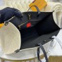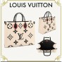 エンボス加工を施したレザーにアイコニックなモノグラム・ジャイアント パターンをあしらったトートバッグ「オンザゴー GM」。編み上げたトップハンドルとハンドルマウントリングに施された目を引くディテールが、ストリートの雰囲気を演出します。内側に複数のポケットを備えた収納力が魅力の、日常使いに最適なアイテムです。