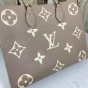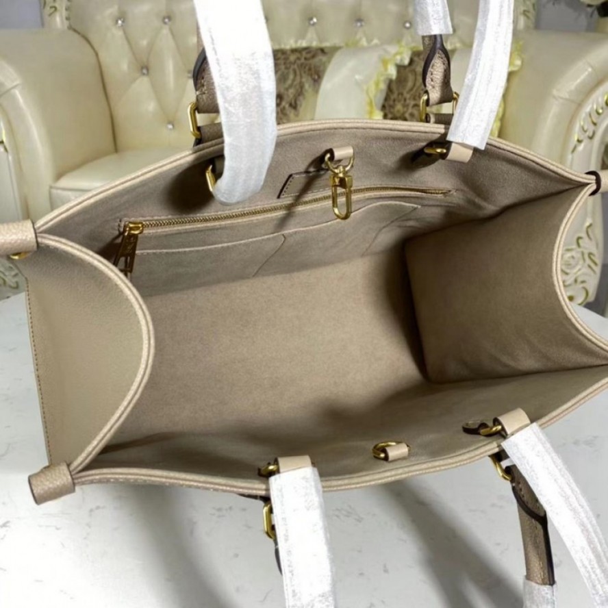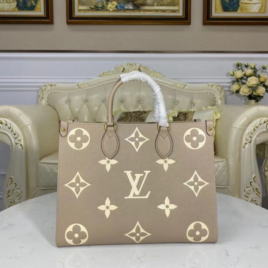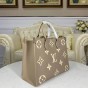 長短2種類のハンドルで、手持ちやショルダーバッグとしてもお楽しみいただけるミディアムサイズの「オンザゴー MM」。しなやかなグレインカーフレザーに、ミディアムサイズのモノグラム・パターンをプリントとエンボス加工であしらいました。収納力に優れ、ノートパソコンなどビジネスの必需品も持ち運べる汎用性の高さも魅力。日常使いに最適なバッグです。