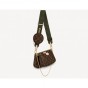 複数のポケットとコンパートメントを備え、クロスボディバッグとして多用途にお使いいただける「ミュルティ・ポシェット・アクセソワール」。「ポシェット・アクセソワール」、「ミニ・ポシェット・アクセソワール」、「ポルトモネ・ロン」を組み合わせたアイテムです。ポシェットには取外し可能なゴールドカラーのチェーンと「Louis Vuitton」の文字を織り込んだジャカード生地の調節可能なストラップが付属し、さまざまな持ち方をお楽しみいただけます。