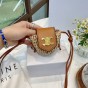 ?仕様?2 X 2 X 2 IN(5 X 5 X 5 CM)ラフィア、カーフスキンのトリミング裏地なしゴールドメタルハードウェアネックキャリースナップ付きTRIOMPHEレザーフラップボタン