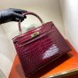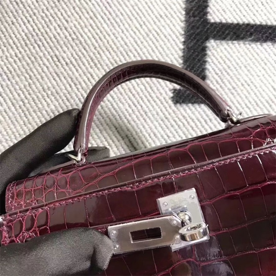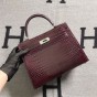 【0111更新】HERMES エルメス Kelly ケリー クロコ ワインレッド シルバー金具 MiniKelly ミニケリー 19cm/20cm/25cm/28cm
