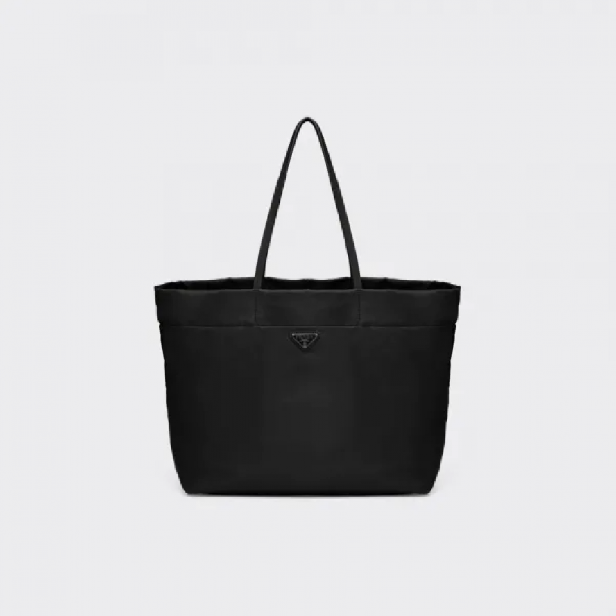 海から回収されたプラスチック素材などを再利用、浄化して作られた革新的な再生ナイロンであるRe-Nylonを使用したトートバッグ。洗練されたシルエットが魅力。「サフィアーノ」レザー(牛革)のハンドルを備え、エナメルメタルのトライアングルロゴがアクセントになっています。