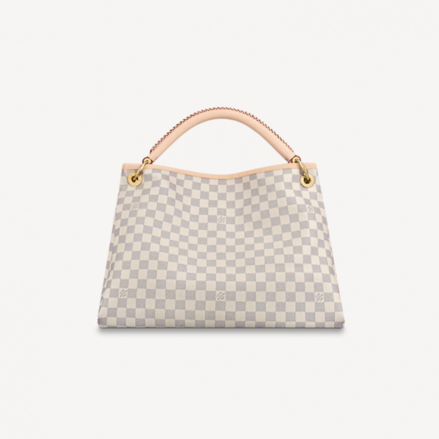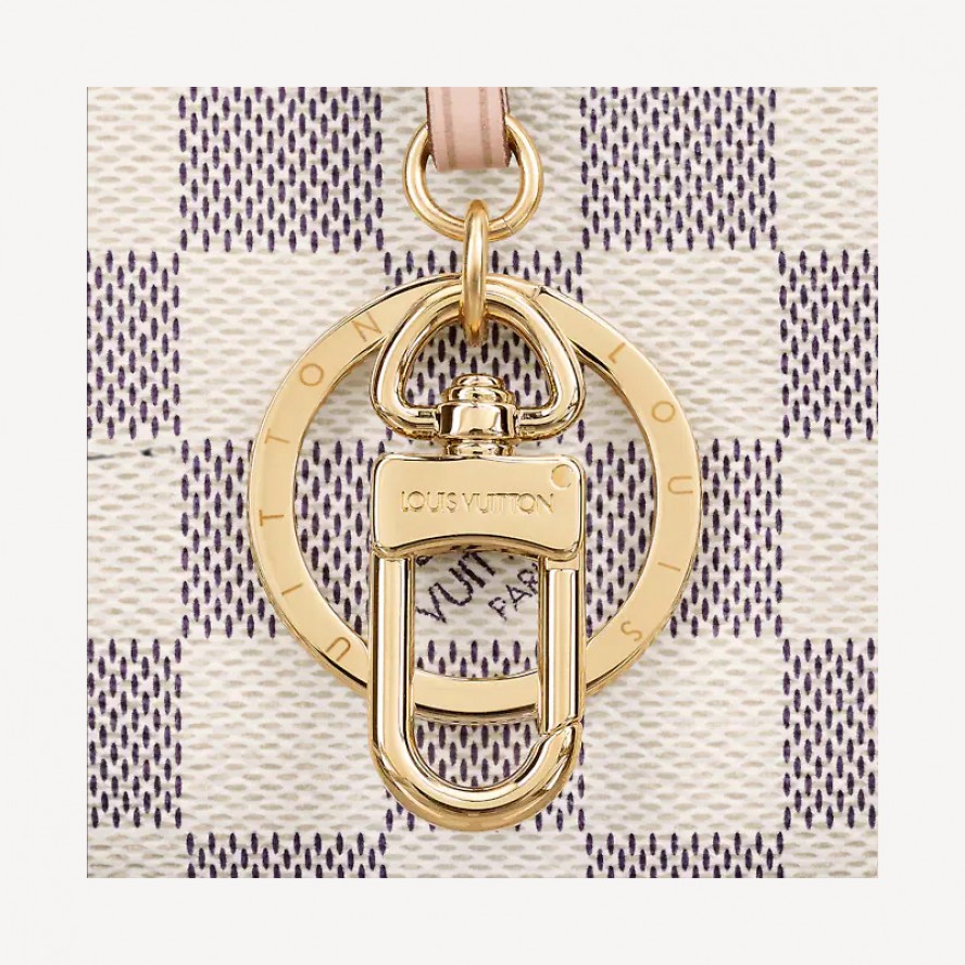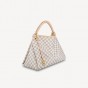 「アーツィNV MM」には、ソフトなダミエ・アズール キャンバスが爽やかでフェミニンなルックを与えます。光沢のあるゴールドカラーの金具とシックなバッグチャームがアクセントとなり、繊細なハンドクラフトによるレザーハンドルがラグジュラスなタッチを加えています。