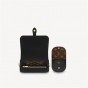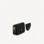 ブラックのカウハイドレザーで作られ、モノグラムキャンバスで装飾された、調節可能な幅広のストラップとスライド式の小銭入れが特徴です。