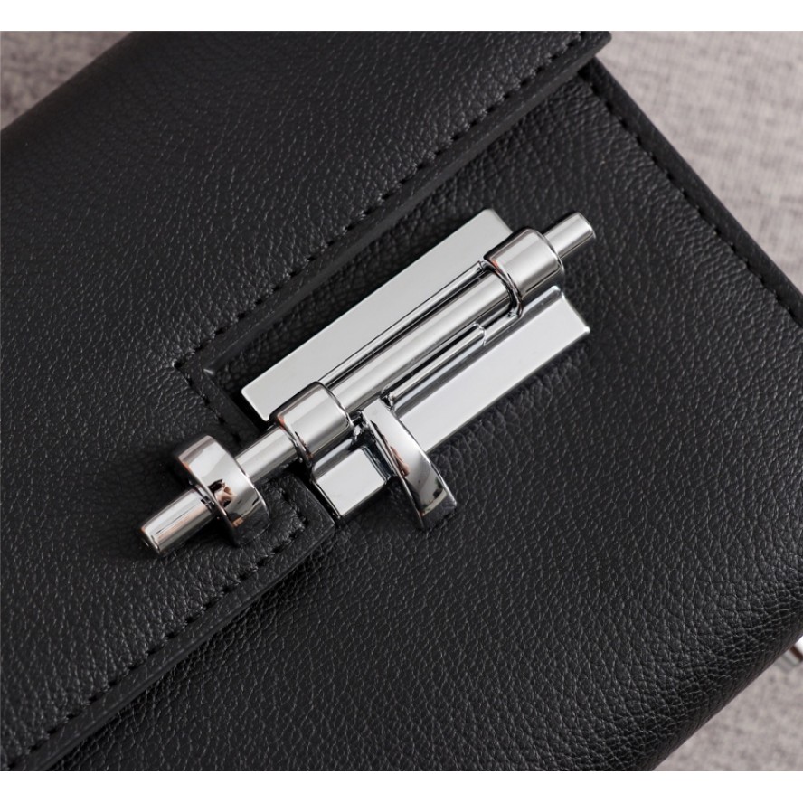 ジュエリー・クラスプを思わせるパラディウム仕上げのシルバーチェーンのバンドリエールが付きました。