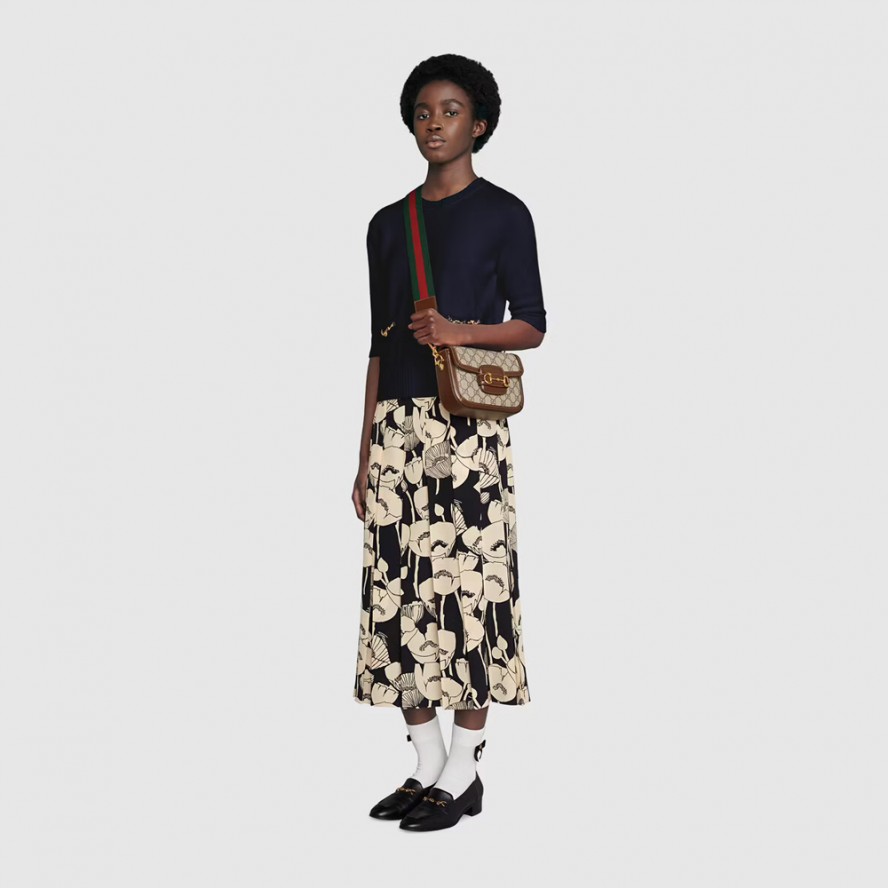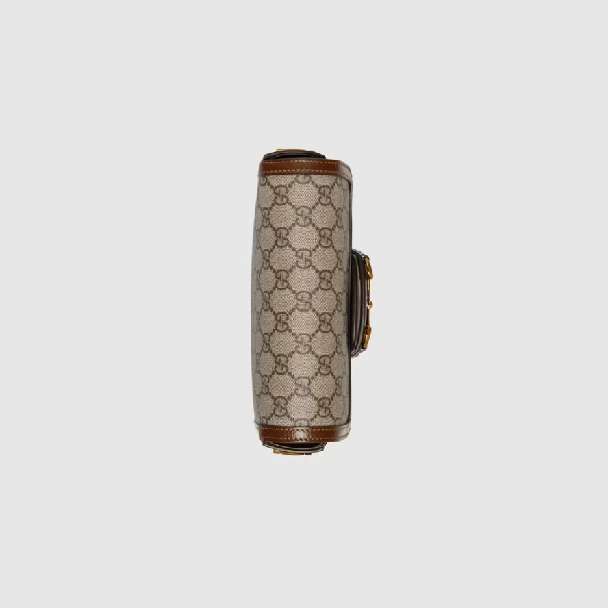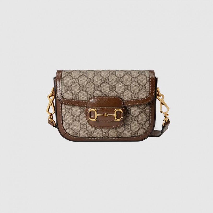 ヴィンテージバッグを再解釈した〔グッチ ホースビット 1955〕ラインに、2種類のショルダーストラップによって表情をアレンジできるミニバージョンのバッグが登場。GGスプリーム キャンバスにブラウンレザーのトリムを合わせています。本体のトリムと同色のレザーストラップは控えめな上品さを、グリーン/レッド/グリーン ウェブ ストライプのストラップはグッチらしさを大胆に演出できます。