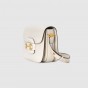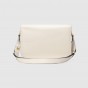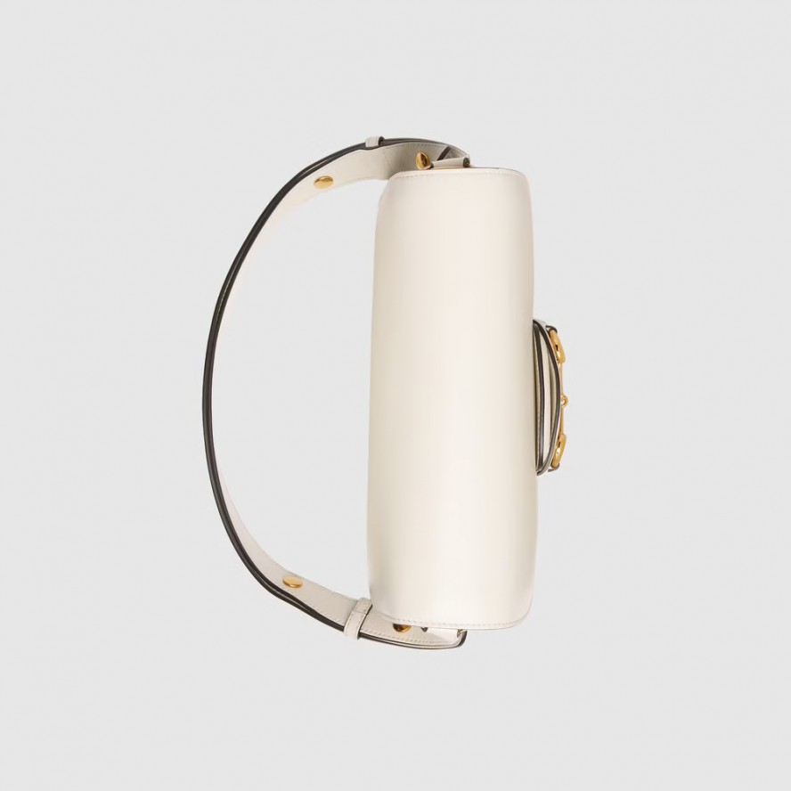 アーカイブデザインを再解釈した〔グッチ ホースビット 1955〕バッグが最新コレクションに登場。60年以上前の誕生時と同じラインやフォルムを取り入れながら、オリジナルのディテールに現代的なスピリットを加え、ホースビットを際立たせています。ダブルリングとバーで構成されたこのモチーフはブランドのルーツを物語るもので、乗馬の世界から取り入れたグッチのシンボルの中でも最も代表的なエレメントのひとつとなっています。このショルダーバッグでは小さなフラップにホースビットをあしらい、ホワイトのテクスチャードレザーと印象的に組み合わせました。ショルダーストラップは長さを調節できるため、ショルダーバッグとクロスボディバッグのツーウェイでお使いいただけます。