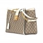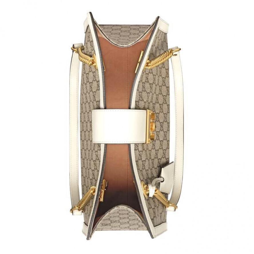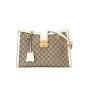 GGスプリーム キャンバスのストラクチャード ショルダーバッグ。ストラップと、アーカイブから復刻されたキーロック クロージャーが付いています。キーは取り外し可能なレザーのキーケースに収められています。 |